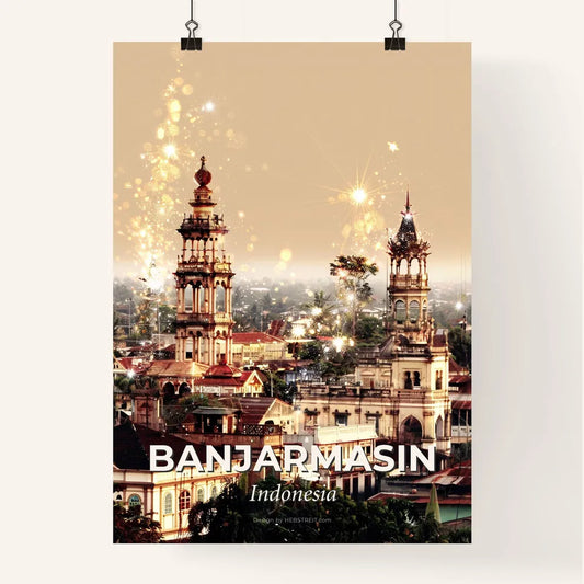 Banjarmasin Skyline Art - Bright Beige Poster of Local Icons - A city with many buildings