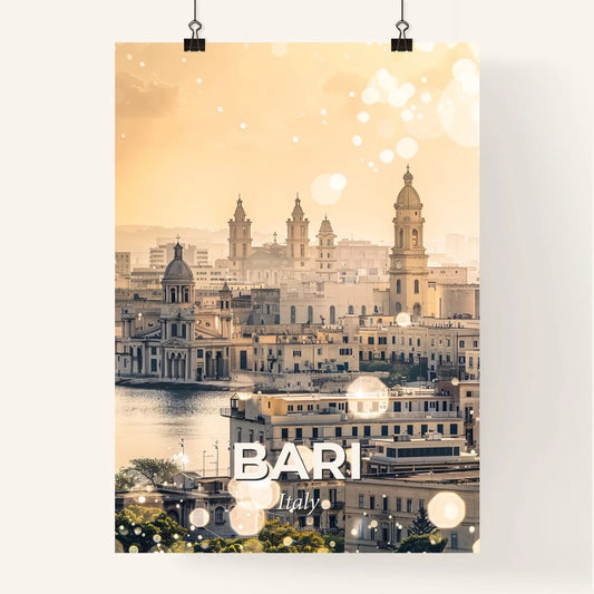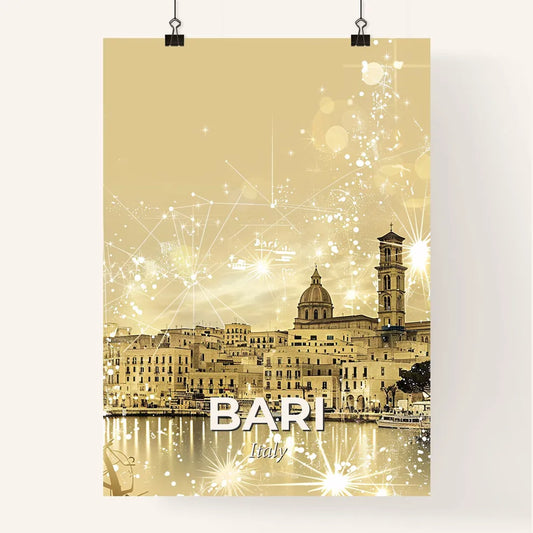 Bari: Bright Beige City Skyline Art - A city with many buildings and a body of water