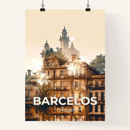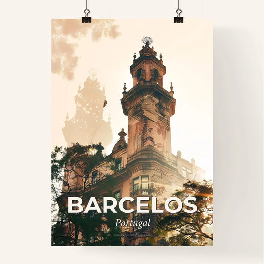 Barcelos Skyline Art Print: Local Icons and Sparkles - A building with a tower and trees