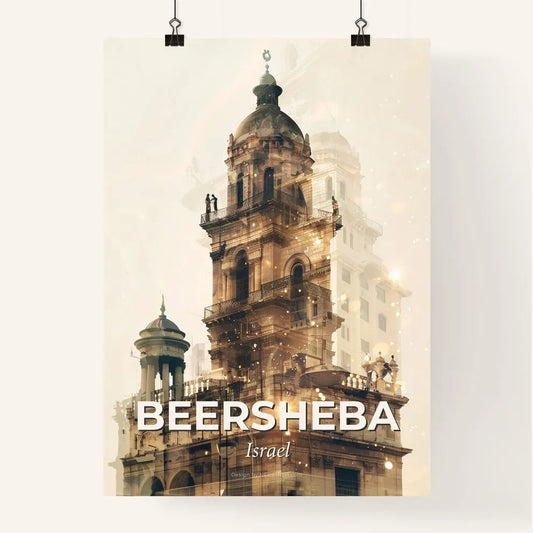 Beersheba Skyline Double Exposure Art - A large building with a tower