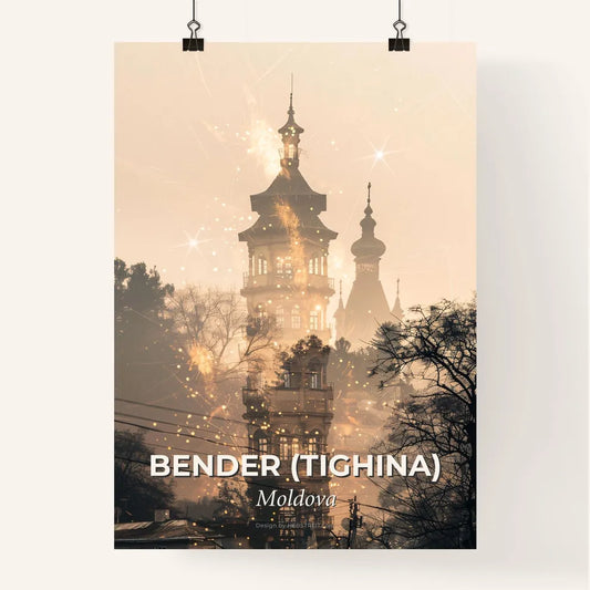 Bender Tighina City Skyline Double Exposure Poster - A building with a tower