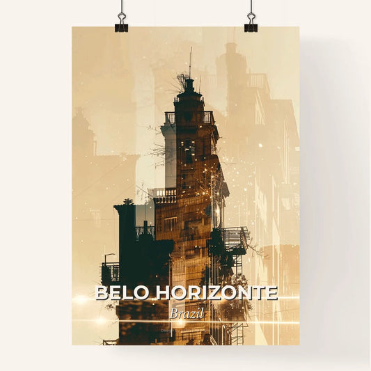 Belo Horizonte City Icons Skyline Composite Art Poster - A double exposure of a building