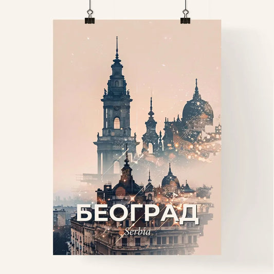 Belgrade Double Exposure Cityscape Poster - A city skyline with a tower and a building