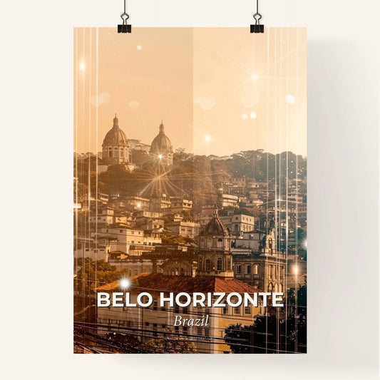 Belo Horizonte City Skyline Beige Poster Art - A city buildings with a light reflection