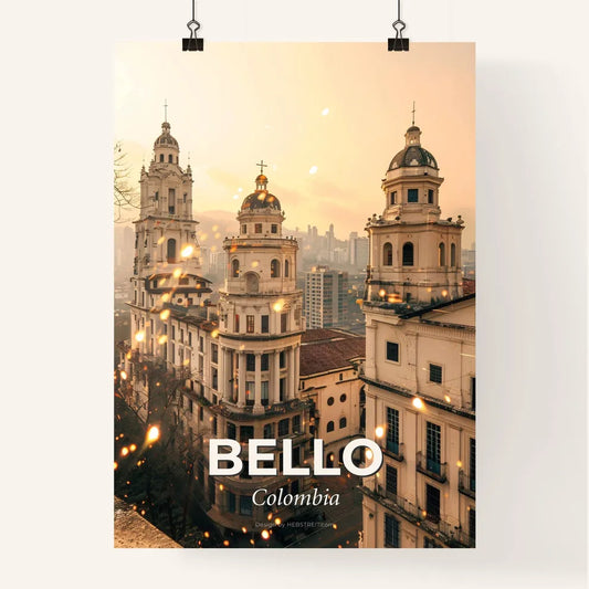Bello City Skyline Art: Pastel Hues, Brilliant Lights - A group of buildings with towers and a city in the background