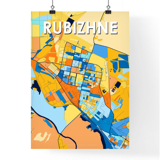 Rubizhne Ukraine Vibrant Colorful Art Map Poster