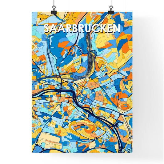 Saarbrucken Germany Vibrant Colorful Art Map Poster