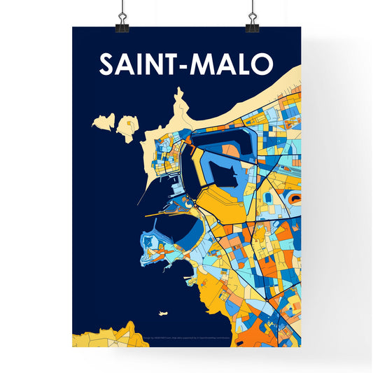 Saint-Malo France Vibrant Colorful Art Map Poster