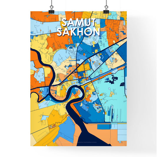 Samut Sakhon Thailand Vibrant Colorful Art Map Poster