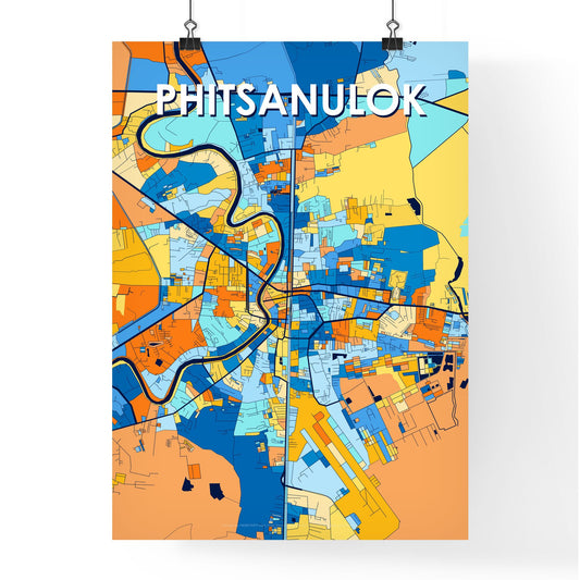 Phitsanulok Thailand Vibrant Colorful Art Map Poster