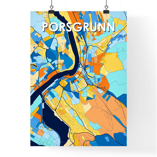 Porsgrunn Norway Vibrant Colorful Art Map Poster