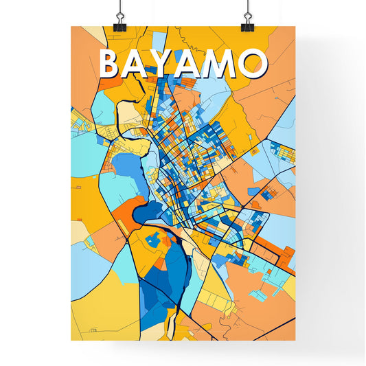 Bayamo Cuba Vibrant Colorful Art Map Poster