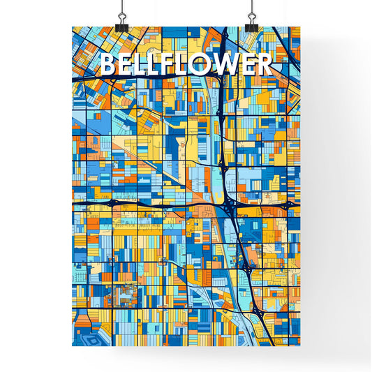 Bellflower California Vibrant Colorful Art Map Poster