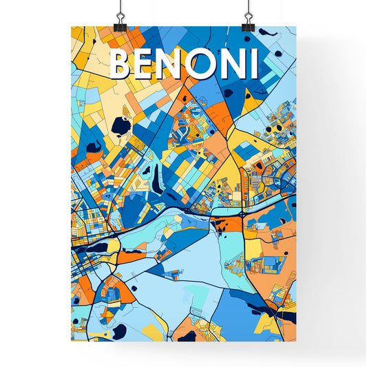 Benoni South Africa Vibrant Colorful Art Map Poster