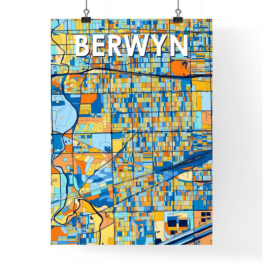 Berwyn Illinois Vibrant Colorful Art Map Poster