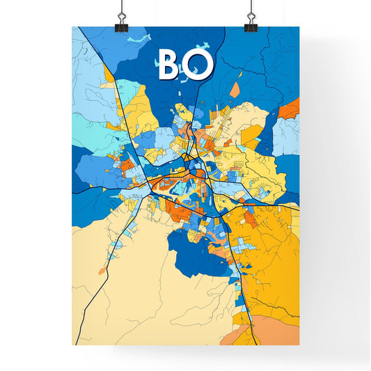 Bo Sierra Leone Vibrant Colorful Art Map Poster