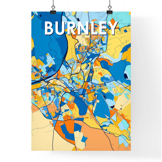 Burnley England Vibrant Colorful Art Map Poster