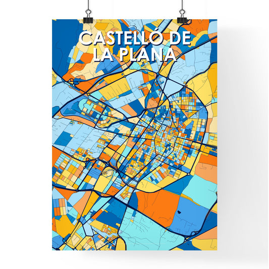 Castelló De La Plana Spain Vibrant Colorful Art Map Poster