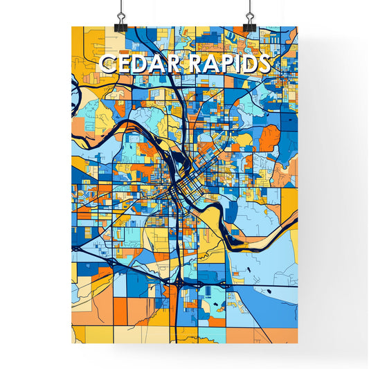 Cedar Rapids Iowa Vibrant Colorful Art Map Poster