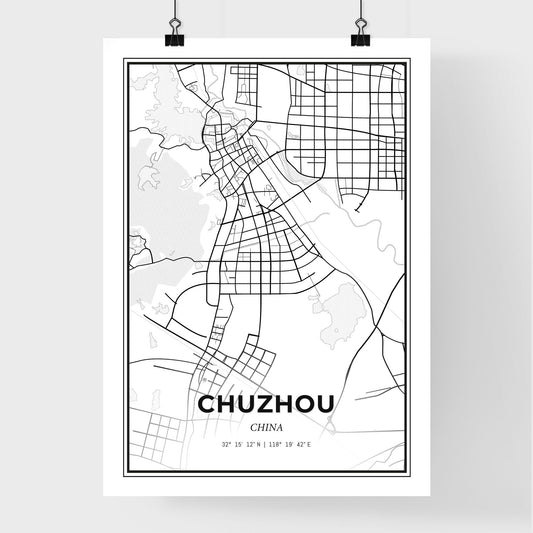 Chuzhou China - Scandinavian Style City Map for Modern Home Decor