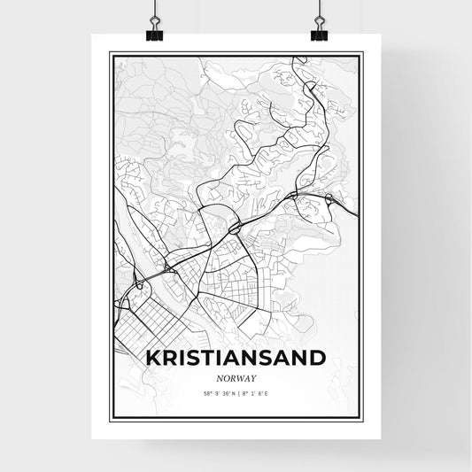 Kristiansand Norway - Scandinavian Style City Map for Modern Home Decor