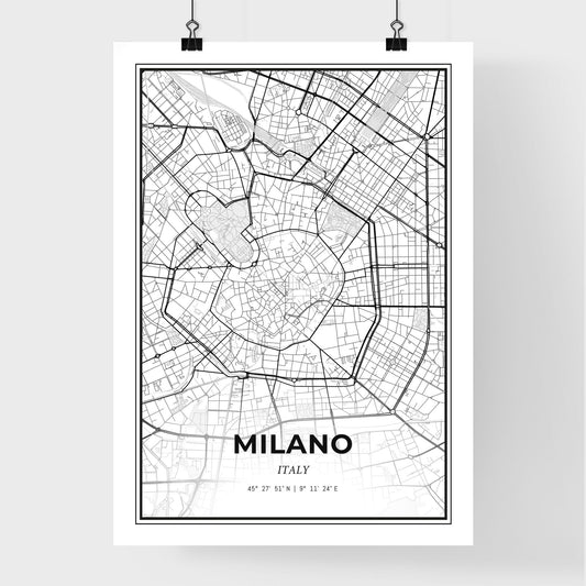 Milan Italy - Scandinavian Style City Map for Modern Home Decor