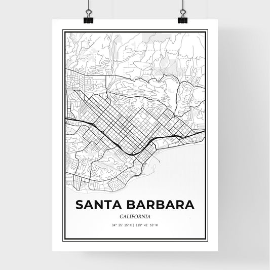 Santa Barbara California - Scandinavian Style City Map for Modern Home Decor