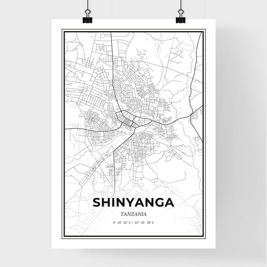 Shinyanga Tanzania - Scandinavian Style City Map for Modern Home Decor