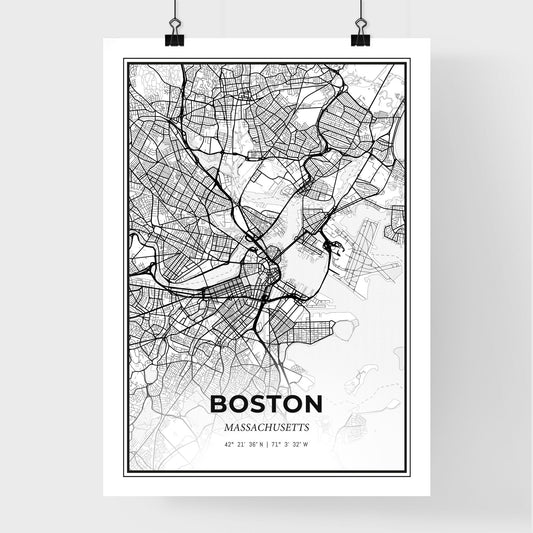 Boston Massachusetts - Scandinavian Style City Map for Modern Home Decor