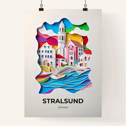 Vivid Stralsund, Germany - a paper cut of a city with a bridge