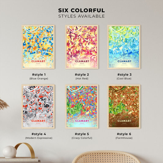 Colorful CLAMART FRANCE Fine Art Map Poster | Customizable