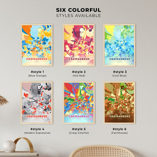 Colorful CHÂTEAUROUX FRANCE Fine Art Map Poster | Customizable