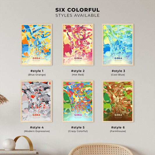 Colorful GERA GERMANY Fine Art Map Poster | Customizable