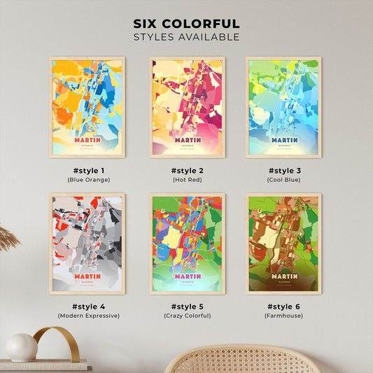 Colorful MARTIN SLOVAKIA Fine Art Map Poster | Customizable
