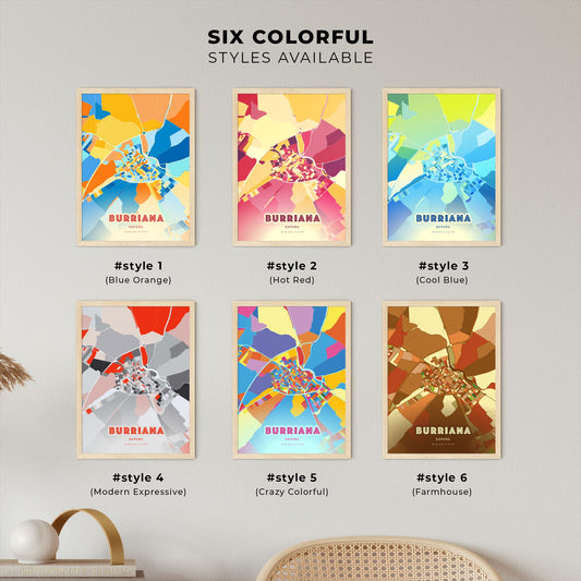 Colorful BURRIANA SPAIN Fine Art Map Poster | Customizable