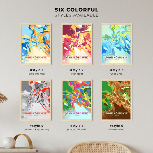 Colorful ÖRNSKÖLDSVIK SWEDEN Fine Art Map Poster | Customizable