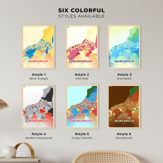 Colorful MANZANILLO CUBA Fine Art Map Poster | Customizable