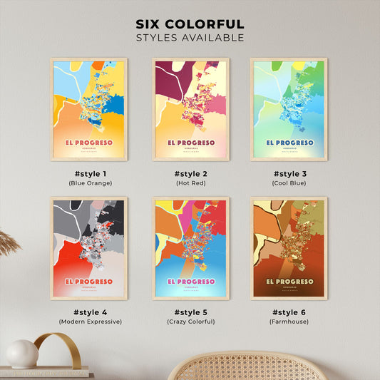 Colorful EL PROGRESO HONDURAS Fine Art Map Poster | Customizable