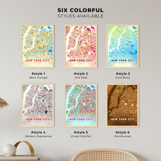 Colorful NEW YORK CITY UNITED STATES Fine Art Map Poster | Customizable