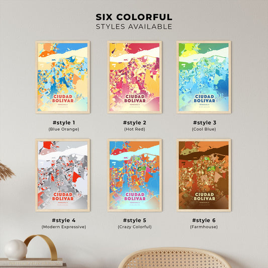 Colorful CIUDAD BOLIVAR VENEZUELA Fine Art Map Poster | Customizable