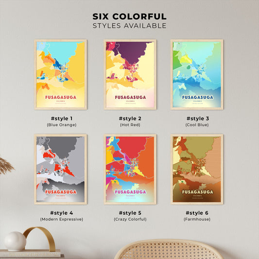 Colorful FUSAGASUGA COLOMBIA Fine Art Map Poster | Customizable