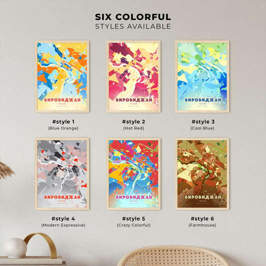 Colorful BIROBIDZHAN RUSSIA Fine Art Map Poster | Customizable