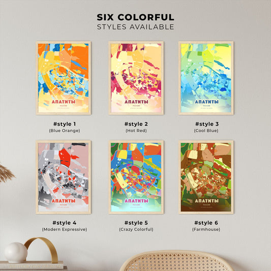 Colorful APATITY RUSSIA Fine Art Map Poster | Customizable