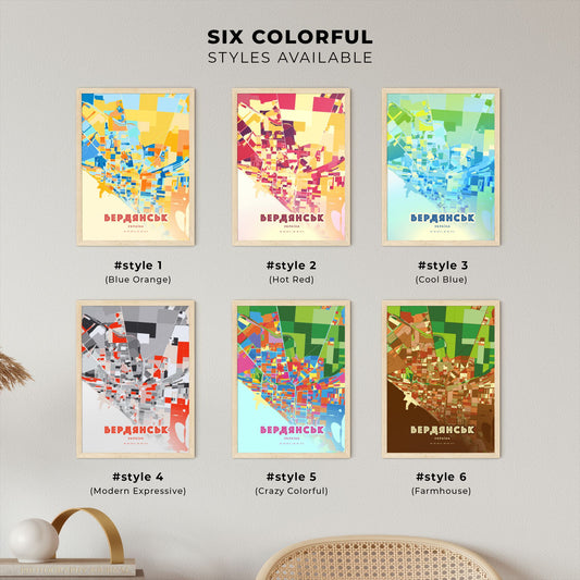 Colorful BERDIANSK UKRAINE Fine Art Map Poster | Customizable