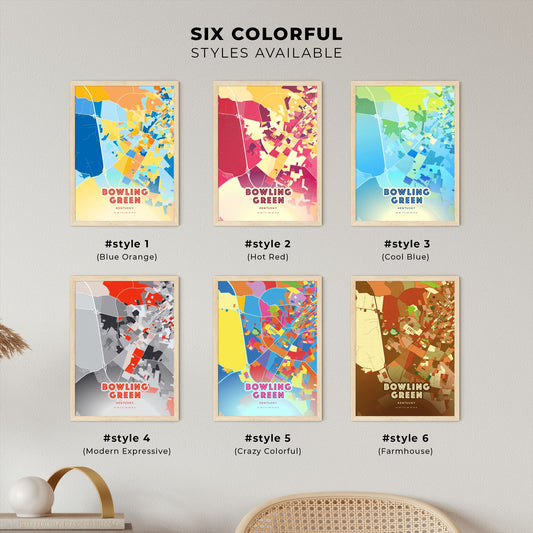 Colorful BOWLING GREEN KENTUCKY Fine Art Map Poster | Customizable