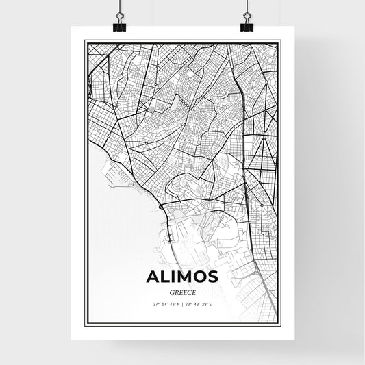Alimos Greece - Scandinavian Style City Map for Modern Home Decor