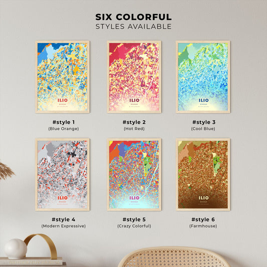 Colorful ILIO GREECE Fine Art Map Poster | Customizable