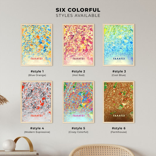 Colorful GALATSI GREECE Fine Art Map Poster | Customizable