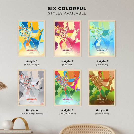 Colorful AGRINIO GREECE Fine Art Map Poster | Customizable