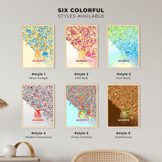 Colorful ALIMOS GREECE Fine Art Map Poster | Customizable